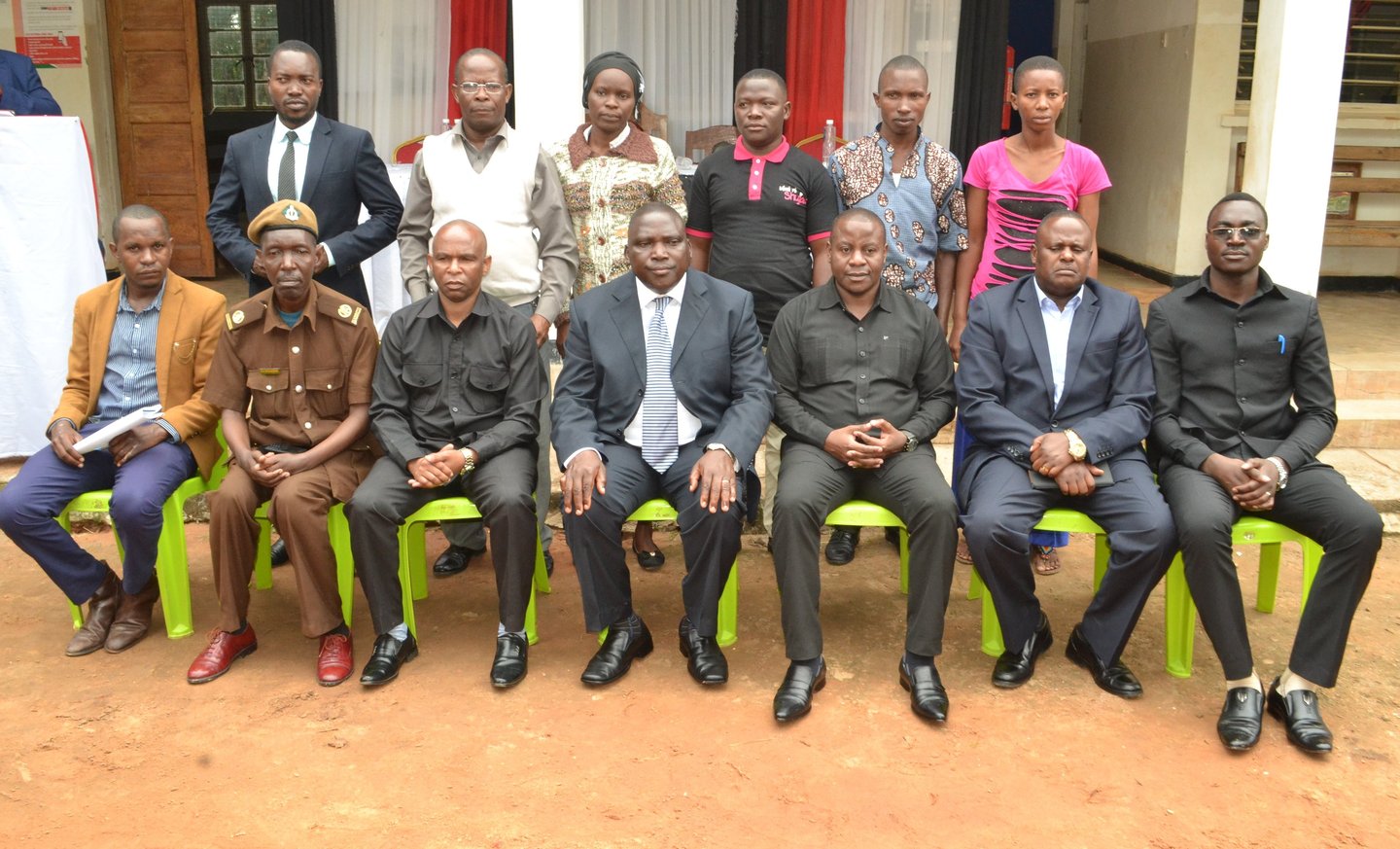 Some Legal assistants (Paralegals) as they stand behind Officials of the major government units at the conclusion of the Low day, the Official guest as the District Commissioner (DC) Kaliua sitting in the middle in Urambo District Region Tabora.