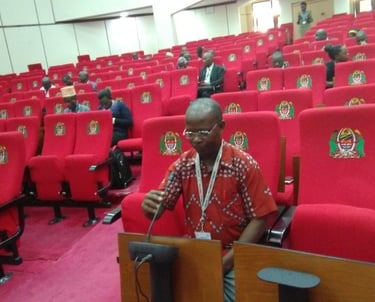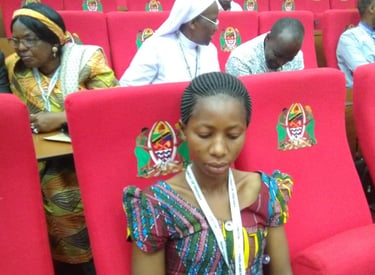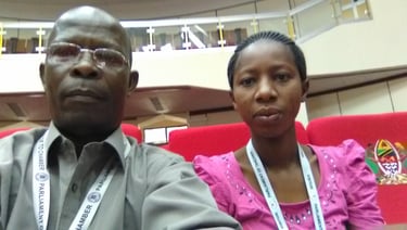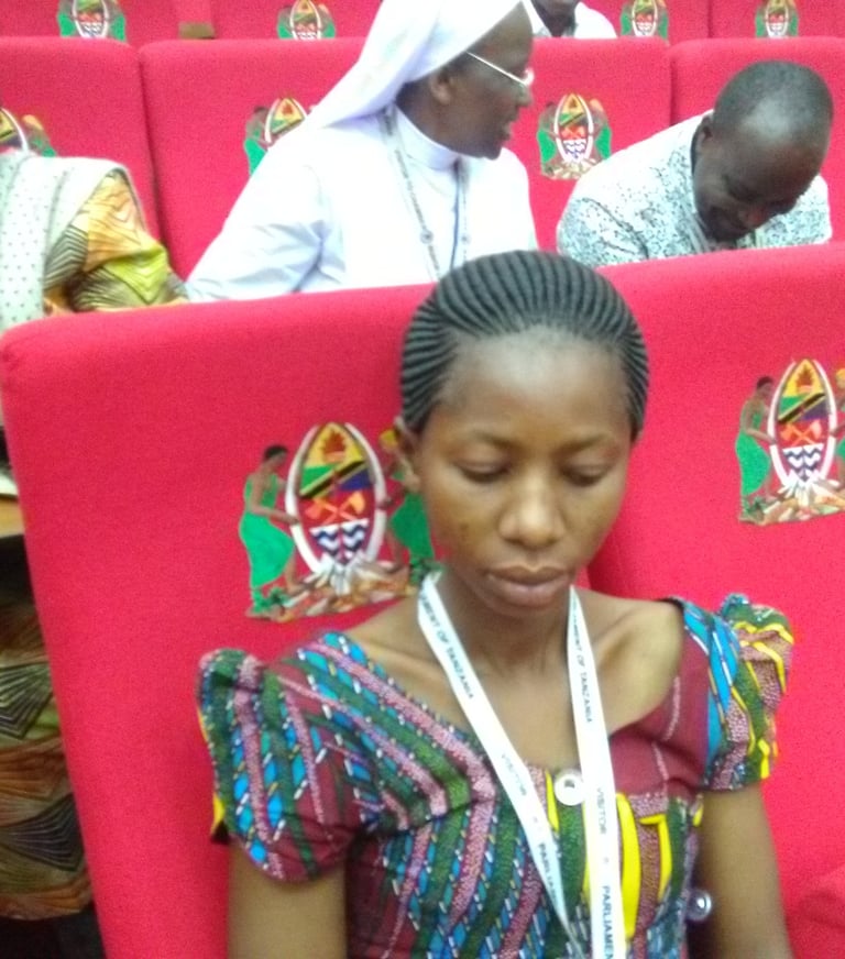 Mkurugenzi mtendaji wa shirika la ULAC, Mzee Alfred Kalugendo na Mhasibu Neema Orgeness wakishiriki kutoa mapendekezo ya Rasimu ya kanuni na sheria za NGOs katika ukumbi wa Bunge la Jamhuri ya mungano Tanzania mjini Dodoma.